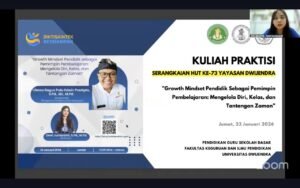DENPASAR – Memperingati HUT ke-73 Yayasan Dwijendra, Program Studi Pendidikan Guru Sekolah Dasar (PGSD) Universitas Dwijendra menyelenggarakan kuliah praktisi daring