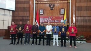 Rektor Dwijendra University sebagai salah satu dari enam Rektor di Bali menerima penghargaan keolahragaan dari Gubernur Bali pada hari Sabtu,