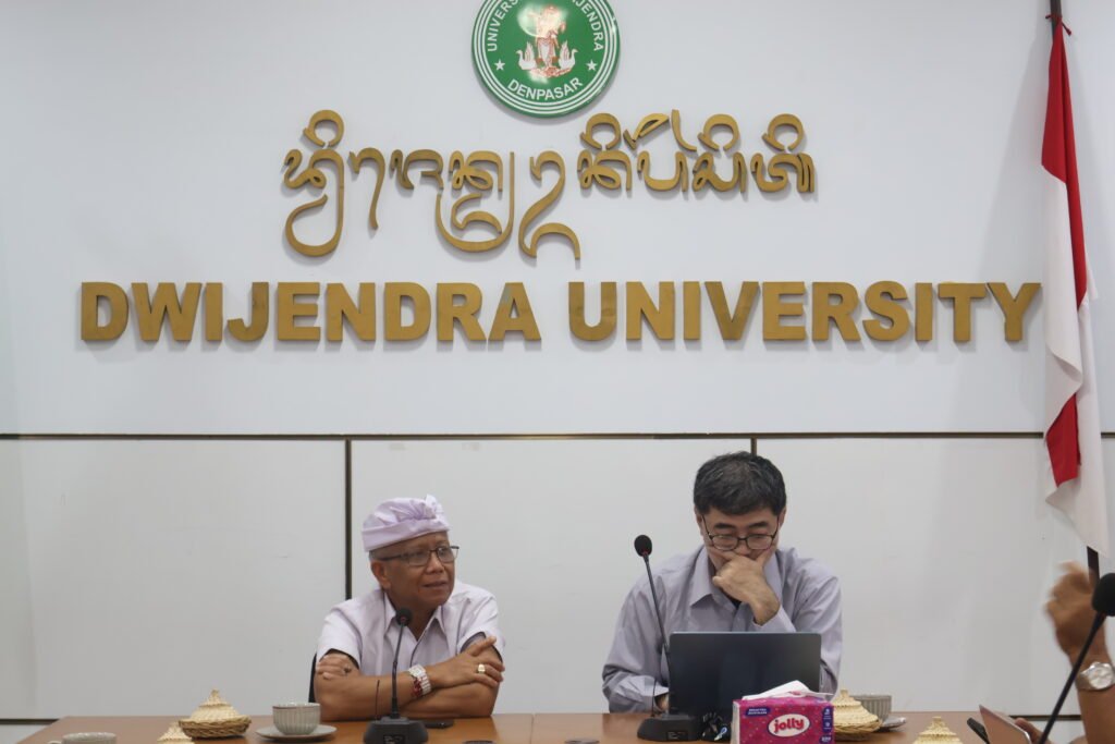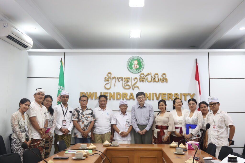 Denpasar, Selasa, 3 Maret 2026 — Universitas Dwijendra menerima kunjungan akademik dari Dr. Jun Ichihara, Doctor of Philosophy dan Senior Researcher pada Institute for Global Environmental Strategies (IGES), Jepang, dalam rangka kegiatan brainstorming terkait pengelolaan kehutanan (forestry management). Pertemuan yang berlangsung di Ruang Rapat Rektorat Universitas Dwijendra ini menjadi forum diskusi ilmiah untuk membahas isu-isu strategis pengelolaan hutan berkelanjutan di tengah tantangan perubahan iklim dan dinamika pembangunan. Kegiatan tersebut dihadiri oleh Rektor Universitas Dwijendra, Prof. Dr. Ir. Gede Sedana, M.Sc., M.M.A., yang juga merupakan Ketua HKTI Bali, didampingi Wakil Rektor II, jajaran Dekan, Ketua Program Studi, serta dosen dari Fakultas Pertanian. Turut hadir pula perwakilan Himpunan Kerukunan Tani Indonesia (HKTI) yang memberikan perspektif praktis dari sisi pengelolaan sumber daya alam berbasis masyarakat. Suasana diskusi berlangsung konstruktif dengan pertukaran gagasan antara peneliti internasional, akademisi, dan praktisi pertanian.