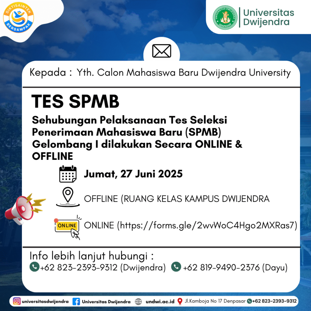 Rektor dan seluruh Civitas Akademika Dwijendra University mengucapkan Selamat Hari Guru Nasional November 25, 2025 Read More »