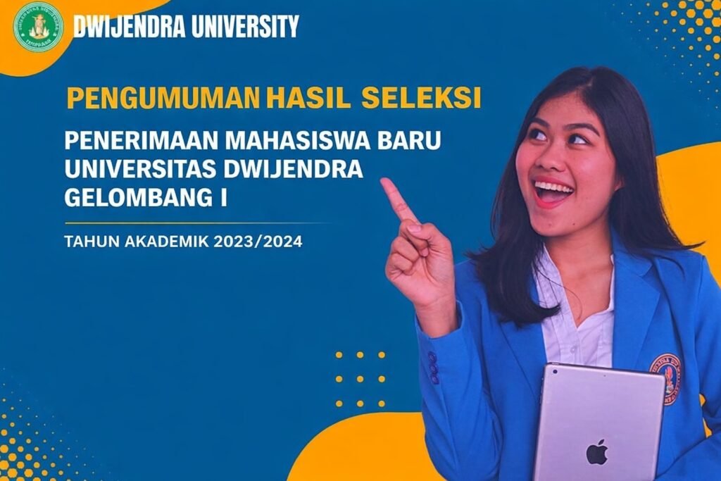 Berdasarkan hasil Seleksi Penerimaan Mahasiswa Baru (SPMB) Gelombang I yang dilaksanakan pada 30 Juni 2023, maka peserta yang dinyatakan LULUS/DITERIMA sebagai calon mahasiswa baru di Universitas Dwijendra adalah sebagaimana tercantum pada daftar nama dalam lampiran pengumuman ini.